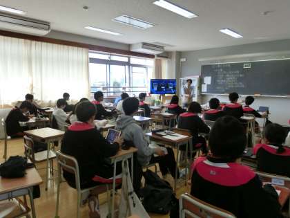 3年生の社会の授業です。今日は基本的人権の社会権について学習しました。