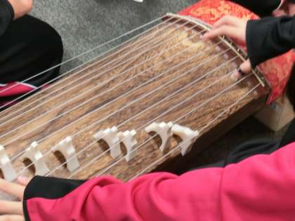 2年生の音楽です。箏の授業です。曲は「さくらさくら」。かなり上達してきました。