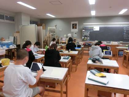 1年生の美術の授業です。風景画がだいぶ進んできました。