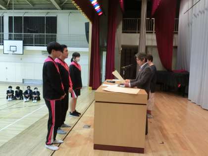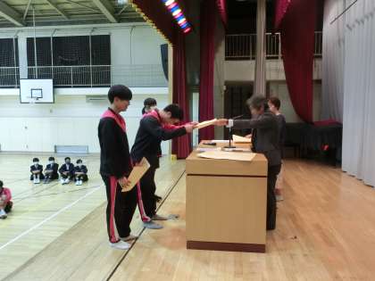 本日は世田谷区立中学校陸上競技大会の表彰を行いました。本年度も本校は大活躍しました。こちらは総合4位、男子総合3位 女子総合4位という素晴らしい結果でした。