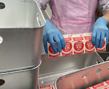 毎日給食で提供される牛乳。クラスの人数ごとに数えるのも給食室で行っています。