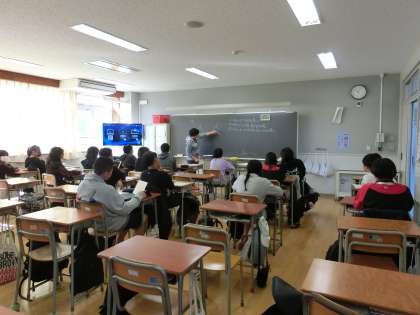 2年生の数学の少人数授業です。三角形の合同について考えました。