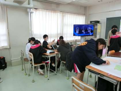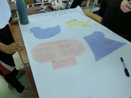 移動教室の事後学習です。班ごとに新聞をつくっています。