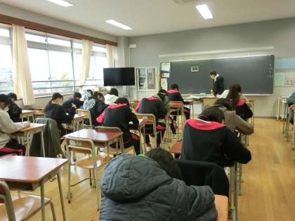 3年生は今日は社会の再テストを実施いたしました。明日は英語、明後日は数学を実施いたします。