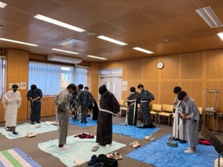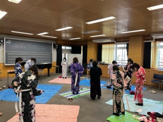 2年生の教科「日本語」の授業では、地域の方々にお越しいただき、ゆかたの着付けを行いました。
