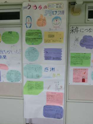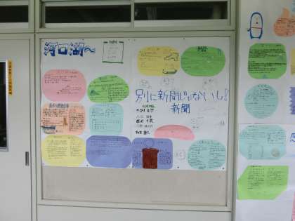 1年生は皮具とこ移動教室の事後学習として班で新聞を作りました。こちらが1年A組です。