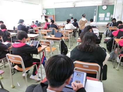 1年生の朝学習では、キュビナを利用して課題に取り組みました。
