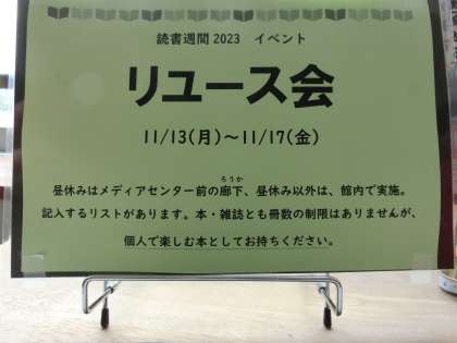 読書週間の取り組みの一つの図書リユースは本日が最終日。読みたい本はみつかりましたでしょうか?