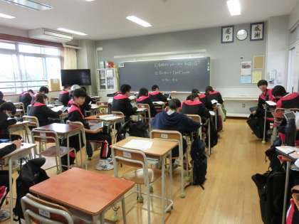 3年生の進路学習の様子です。今日は面接ガイドに沿って、面接試験の対策を行いました。