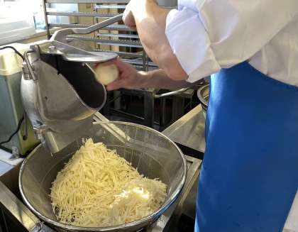 ハニーサラダには、揚げて塩を振ったじゃがいもを乗せています。食感が楽しめる仕上がりで人気の料理です。