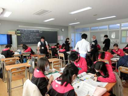 本日の5時間目、東京教師道場の社会の研究授業を本校の2年G組で行いました。都内から多くの先生方が来校し授業観察、研究協議会を行いました。