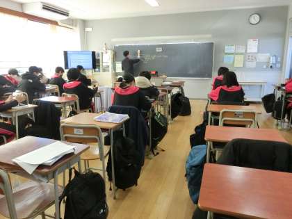 3年生の英語の少人数授業です。じっせ1に取り組みました。