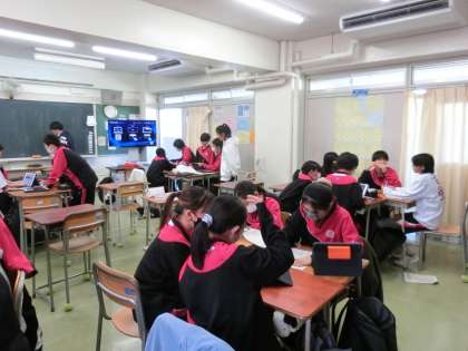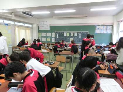 1年生は1月の校外学習(都内めぐり)にむけて班別のコースを検討しました。