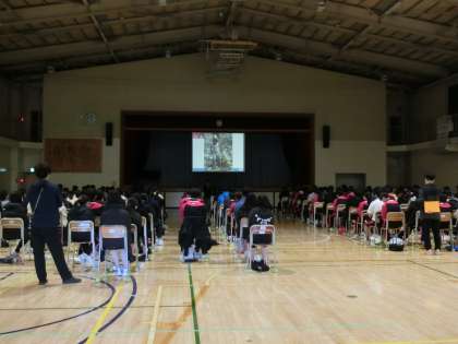 本日は体育館で一斉にフリーザチルドレンジャパンの方に講演をしていただきました。本日は子どもの権利条約にスポットを当て、児童虐待、児童労働、ストリートチルドレンから世界の子供たちを救うにはどうしたらよいかを考えました。