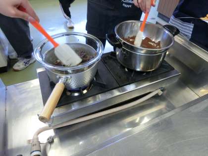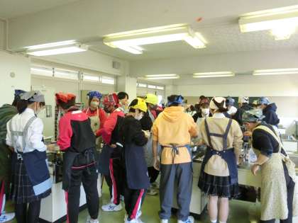 本日より3年生の家庭科で調理実習が始まりました。今日はチョコレートを使ったフリッジケーキです。出来上がりが楽しみですね。