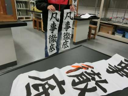 書道部の活動の様子です。今学期末に書道展に出展します。今日は外部講師の先生に教えていただきました。