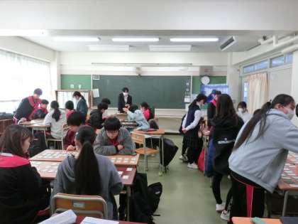 1年生の国語の授業でも百人一首が始まりました。上の句で札を取っている生徒もいました。