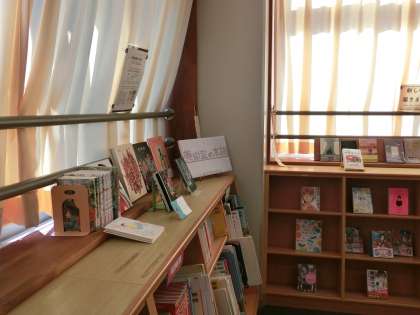 図書室内に、明日の座談会にお招きしたスペシャルゲストの方が表紙のデザインを行った本のコーナーを設けました。ぜひ手に取ってみてください。