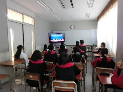 演劇部です。活動の後半には本校が都大会で演じた演目を鑑賞し今後の演技の参考にしました。