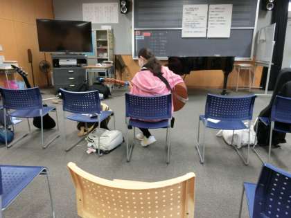 軽音楽部はそれぞれのグループごとに演奏の練習をしました。
