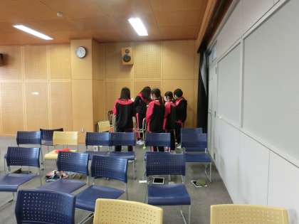 3年生の音楽の授業です。合唱コンクールのパート練習がどのクラスでも始まっています。