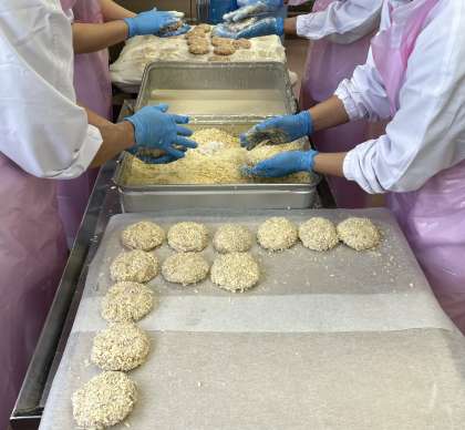 犬塚惇平さんの「異世界食堂」から、『メンチカツ』を作りました。メンチカツは、一度ハンバーグのように成形してから衣をつけて揚げます。とても手間がかかる料理なので時間までに間に合うかドキドキしていました。