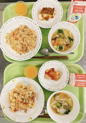 今日は事前アンケートで主菜を選べるセレクト給食でした。写真は上が魚料理で、下が肉料理のものです。