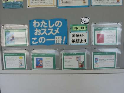 メディアセンター前の私のおすすめ本が1年C組になりました。