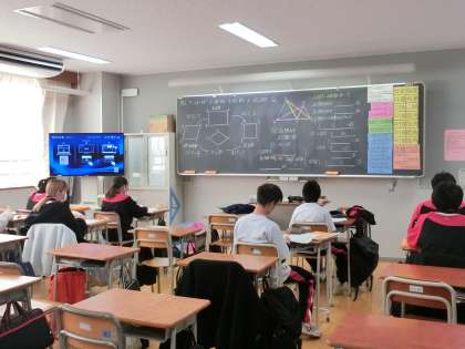 2年生の数学の少人数授業です。今日は合同な図形の応用問題に取り組みました。