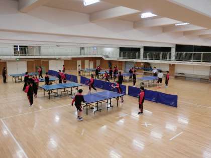 1年生の保健体育の授業です。今日は卓球を試合形式で行いました。