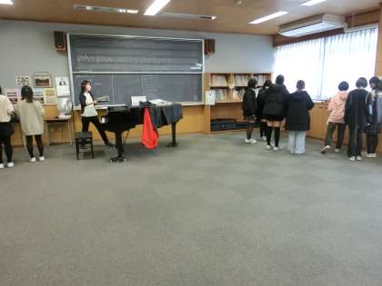 2年生の音楽の授業です。合唱コンクールの自由曲のパート練習の様子です。
