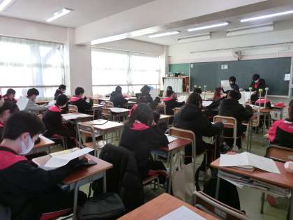 1年生の朝学活です。明日のお楽しみ会の説明をしました。
