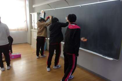 ドアをはずして磨きます。黒板もきれいに磨きます