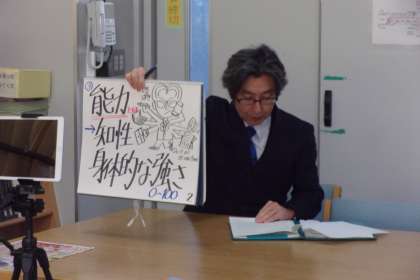 3学期の始業式です。メディアセンターより各教室にライブ配信をいたしました。校長先生のお話です。今日はJALを再建した稲森和夫氏の話より、『人生を成功に導くには「考え方」と「熱意」』にあるということを中心にお話をいたしました。