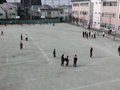 多くの生徒が校庭でボール遊びをしていました。