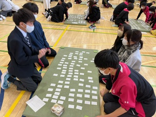 2年生は体育館と格技室に分かれて百人一首大会を行いました。
