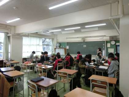 1年生の英語の時間では、ペア学習で教科書本文に書かれている内容についてプレゼンテーションでより分かりやすく相手に説明しました。