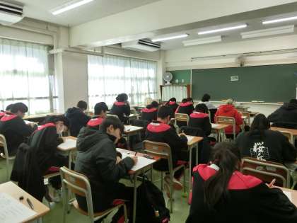 1年生の英語の小テストの様子です。一生懸命取り組んでいました。