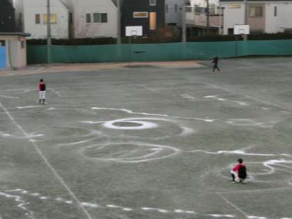校庭の凍結防止のため練習後野球部の生徒が塩化カルシウムを撒いてくれました。寒い中ありがとうございました。
