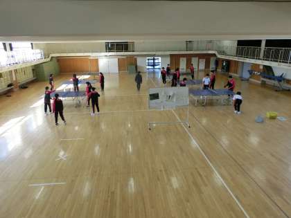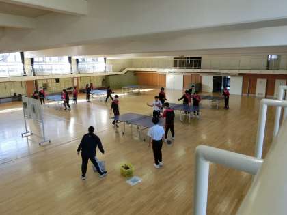 格技室では卓球の授業を行いました。5点先取のゲームです。