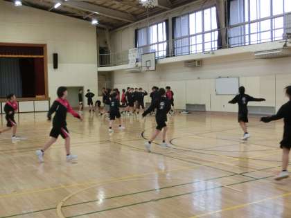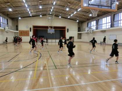 体育館では男女のバスケットボール部が練習を行いました。こちらもウォーミングアップに時間をかけました。