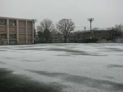 お昼過ぎに降り始めた雪が積もり始めました。下校の際は足元に十分に気を付けましょう。