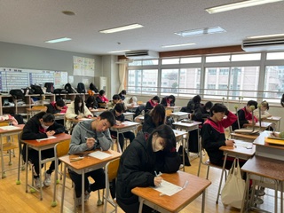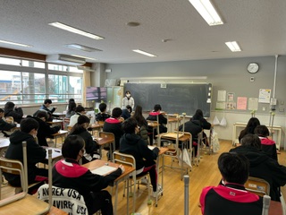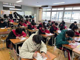 2年生は朝学習の時間で、数学の小テストを行いました。
