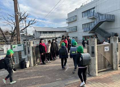 本日は桜丘小学校であいさつ運動を行っています。