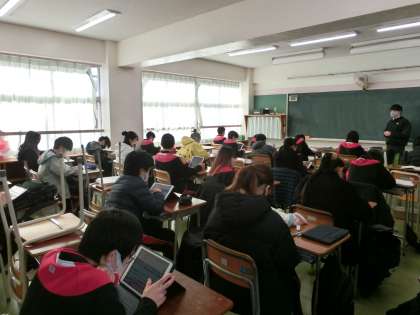 1年生の朝学習の様子です。こちらもキュビナで来週の積み重ね総合テストに備えました。