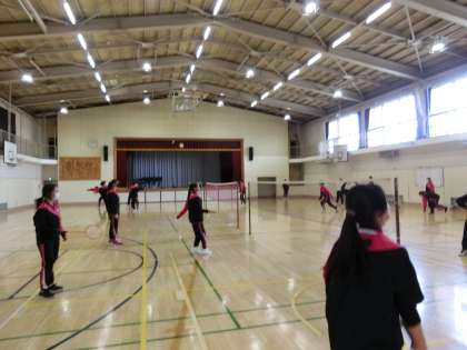 受験シーズンではありますが3年生の体育の授業では元気いっぱい動き回りました。こちらはバドミントンを行っている様子です。