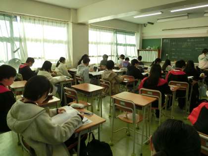 1年生の朝学習の様子です。今日は積み重ね総合テスト2日目、数学、理科、美術が行われます。テストに向けて最後の確認をしました。