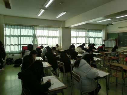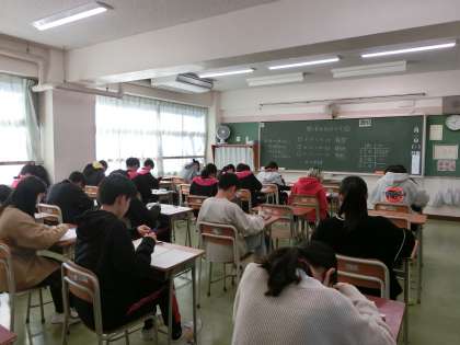 今日は積み重ね総合テストの2日目です。こちらは1年生の数学のテストの様子です。