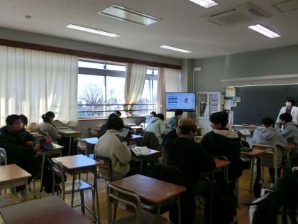 3年生は1〜3時間目まで特別時間割で授業を行っています。こちらは理科の授業の様子です。