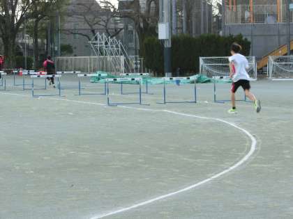春一番の強風が吹く中、陸上競技部はハードルの練習を行いました。